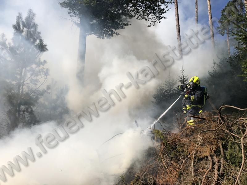 Zum Glück konnte der genaue Einsatz im Wald in Enikelberg schnell lokalisiert werden. Das rasche Eingreifen der einzelnen Atemschutztrupps und der Eingrenzung des Brandes verhinderte Schlimmeres. Für die Löschwasserversorgung der eingesetzten Rohre musste ein Pendelverkehr eingerichtet werden. Nachdem die groben Löscharbeiten abgeschlossen waren wurde der Boden des betroffenen Waldgebietes durch einen Traktor mit Mulcher zersetzt.