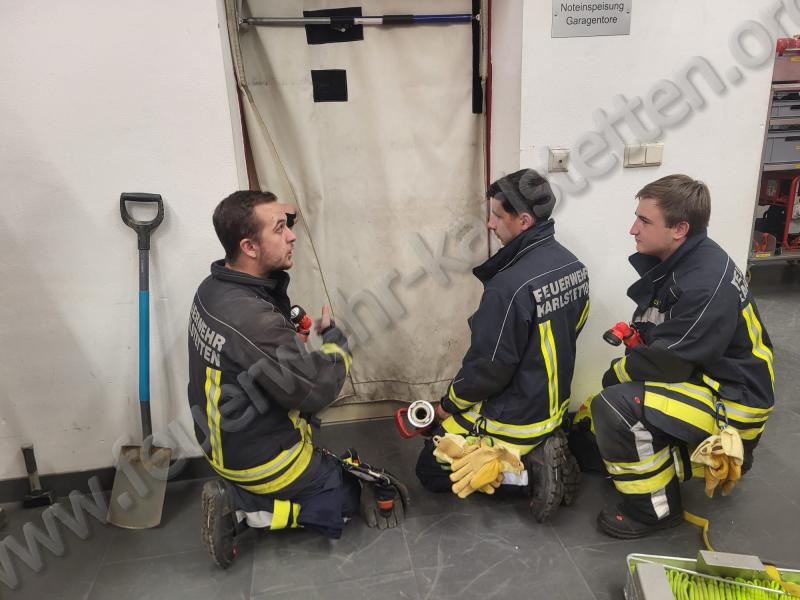 Zu Beginn wurden verschiedene Taktiken besprochen, wie eine Schlauchleitung im Atemschutzeinsatz optimal verlegt werden kann. Anschließend wurde einer unserer neuen Rollcontainer vorgestellt und dessen Aufbau sowie Einsatzmöglichkeiten erläutert. Danach wurden alle Geräte durchgegangen, die im Atemschutzeinsatz benötigt werden könnten. Dabei konnten viele Fragen geklärt und wertvolle Tipps für den praktischen Einsatz vermittelt werden.