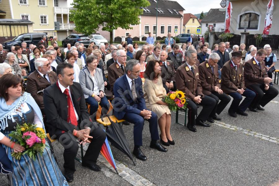 Der zweite Festtag war geprägt von der 140 Jahr Feier und der Fahrzeugsegnung, welche im Zuge einer Feldmesse stattgefunden hat. Als Fahrzeugpatinnen für das neue Kommandofahrzeug stellten sich Frau Manuela Kronister und Frau Helga Kraushofer zur Verfügung, nochmals herzlichen Dank dafür! Anschließend folgten im Festakt Ansprachen von Bürgermeister, Bezirkshauptmann und Bezirksfeuerwehrkommandant. Seitens Bezirks- und Abschnittsfeuerwehrkommando wurde eine Urkunde für das 140 jährige Bestehen der Feuerwehr überreicht.